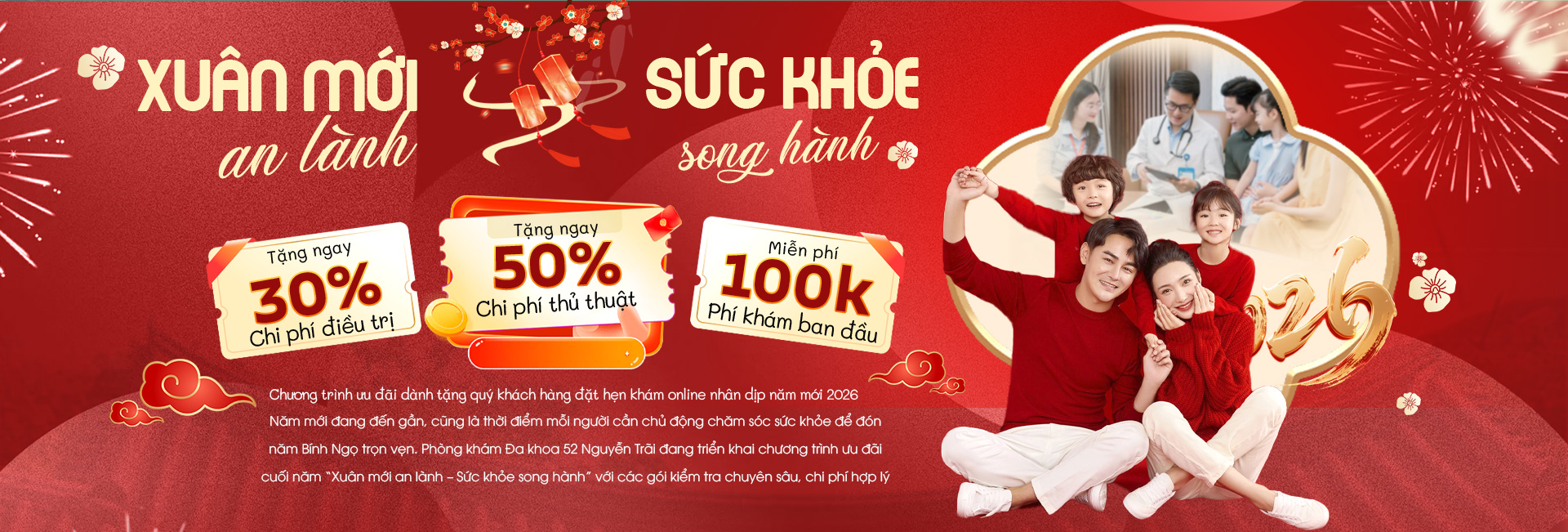 Năm mới đang đến gần, phòng khám Đa khoa 52 Nguyễn Trãi triển khai chương trình ưu đãi “Xuân mới an lành – Sức khỏe song hành” với các gói kiểm tra chuyên sâu, chi phí hợp lý